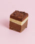 A rich cacao base topped with a chocolate "mousse", a layer of creamy white chocolate "mousse", and a glossy dark chocolate ganache sprinkled with Solomon’s Gold chocolate chips. Absolute Christmas decadence and an RRF team fave!